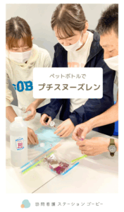 スヌーズレンとまではいきませんが、プチスヌーズレンとして今回は、簡易に出来て持ち運ぶ事が出来るキラキラペットボトルを作製してみました。